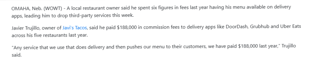 A recent article from First Alert 6 highlights how much of each order can go toward third-party fees—and why more restaurants are starting to rethink how they handle online ordering.